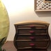 A really large bandsaw box. I made this using some colorful poplar and oriented strand board. The poplar was chosen for its character and Ive been on an osb kick lately because a buddy of mine has been bringing me the stuff from job sites. Osb is used commonly for sheathing houses but I love the look it gives my boxes. I used purple heart for the drawer pulls for a splash of color.I finished the box in satin and used flock for the drawers. The box measures 10 and a half inches tall x11 and a half inches wide x 5 and a half inches deep.